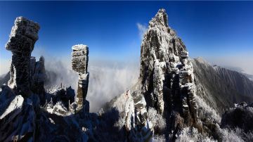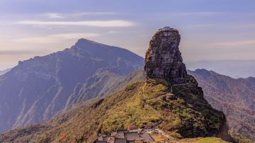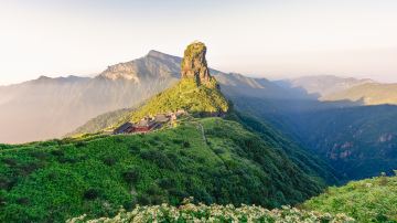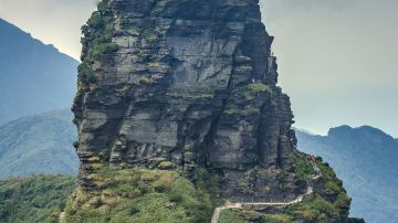 红云金顶石峰位于梵净山景区内,高达94米,挺拔峻峭,像一根巨大的擎天石柱拔地而起。它与月镜山南北相望,形成两峰对仗之势,景致极其壮观。金顶石峰下临深壑,于百里以外遥望,有如玉笋插天。其顶部常有云雾缭绕,在阳光的辉映之下,云彩灿烂绚丽,因此被称为“红云金顶”,谐“鸿运金顶”之音。地址:铜仁市江口县梵净山风景区内