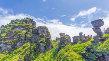 还有,蘑菇石这处景点是梵净山上主要景点的交汇处: 站在这里,可以远眺四围群山,近观老金顶和红云金顶、拜佛台、普渡广场、九皇洞,还可与蘑菇石、翻天印亲密接触,拍照留影。