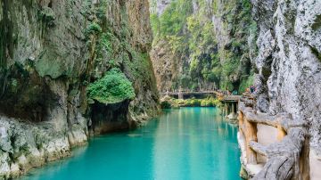 梵净山是武陵山脉的主峰,位于江口、印江、松桃三县交界处,山体庞大雄浑,摩云接天,早在明初就被尊为名岳之宗,是有名的佛教圣地。此外,梵净山还拥有成片的红叶观赏区,每到秋天,层林尽染,红叶与山上的庙宇交相辉映。在这里可以坐着缆车俯瞰连绵不断的红叶,也可以漫步于山间,感受两旁和头顶的红叶似火。