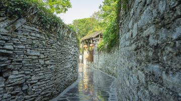 青岩古镇背街是贵州省贵阳市花溪区的一处历史悠久的石巷,这条街道长约510米,宽约4米,路面由青石板铺就,经过数百年的冲刷和磨砺,已光可鉴人,泛着青黑的光芒,给街巷带来一种独特的时空感与神秘感。街边是层层片石垒起的院墙,路窄而幽静,沿山势起伏,是摄影的理想地点。背街不仅是连接财神庙和慈云寺的重要通道,也是古镇历史的见证者。据《青岩镇志》记载,背街与古镇的四条主街同时修建,有着与古镇同样悠久的历史。如今,背街仍保留着原始的风貌,街边的客栈、茶坊在绿色掩映下,为游客提供了一个静谧、古朴的休憩之地。漫步其中,仿佛穿越回明清时期,感受那份宁静与历史的厚重。地址:贵州省贵阳市花溪区青岩镇青岩古镇